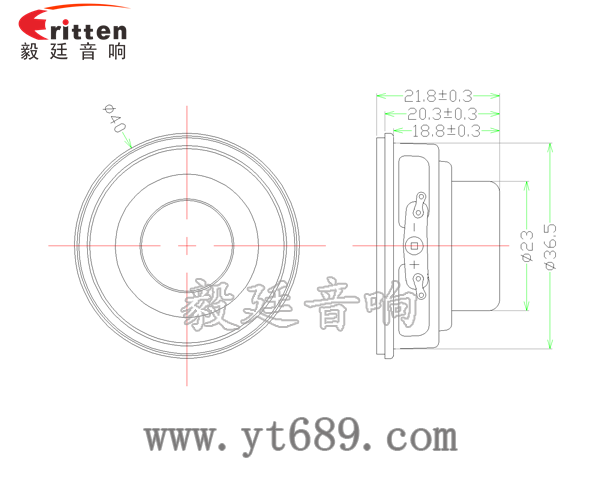 40mm圆形铁盆架内磁全频喇叭,采用的是高性能稀土高强磁,音色优美,厚实;