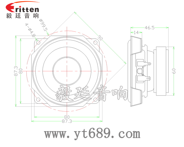 此款3.5寸20芯全频喇叭,频率范围为83HZ~13KHz,质感强,优异用于蓝牙音箱、无线桌面音箱、多媒体音箱单元上,听感厚实,毅廷喇叭厂家工程师精心研发,是发烧者的爱慕,受到广大客户的信赖。