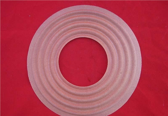 弹波的常用资料可分为棉布、蚕丝、化纤(CONEX)、混纺(Marton)等。有7、10、16、21、32、42、60等支纱之分,支纱越大则越细,7~16支纱常使用于8’‘以上的扬声器中, 21~32支纱常使用于8’‘以下的扬声器中, 32支纱以上常使用于3’‘以下的扬声器中;化纤(CONEX)、混纺具有拉伸度杰出、不易脆裂、抗疲劳性好等长处,但价位较高且粘结性差,故常被用于大功率的大口径的扬声器中;棉布和蚕丝的价格便宜且粘结性特好,但存在拉伸度低、易脆裂、抗疲劳性差等缺点,故常被用于小功率的等级低扬声器中;判别原料的简略办法是取弹波的单股原料用火烧,若烧後的灰呈黑色的则为化纤类的原料,若烧後的灰呈灰白色的则为棉布类的原料。