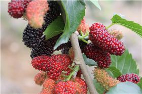桑椹既可入食,又可入药,中医认为桑椹味甘酸,性微寒,入心、肝、肾经,为滋补强壮、养心益智佳果。具有补血滋阴,生津止渴,润肠燥等功效,主治阴血不足而致的头晕目眩,耳鸣心悸,烦躁失眠,腰膝酸软,须发早白,消渴口干,大便干结等症。桑子绿色变红色再黑色,是一个漫长的过程↓