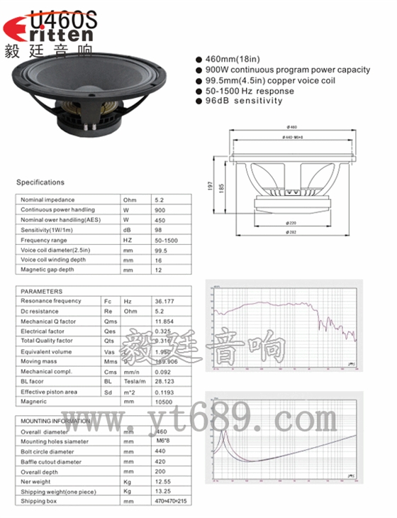 ★频率范围(freq response):50Hz~1.5KHz