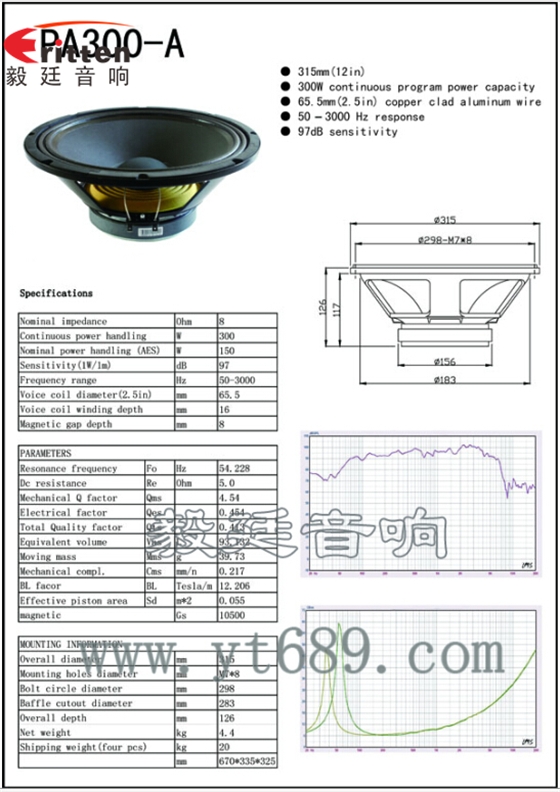 ★灵敏度(SPL):97dB(1M/1W)