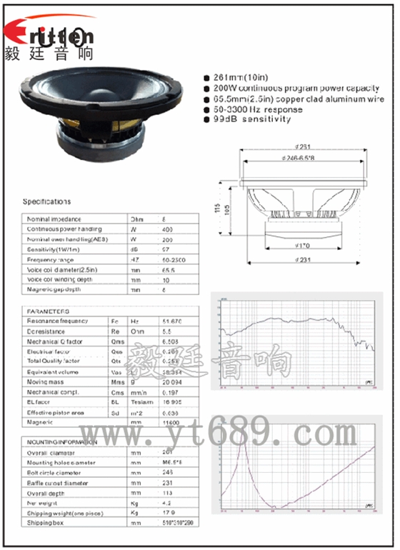 ★频率范围(freq response):50Hz~2.5KHz