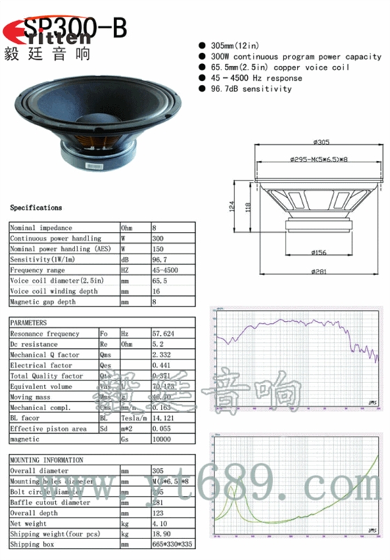 ★灵敏度(SPL):96dB(1M/1W)