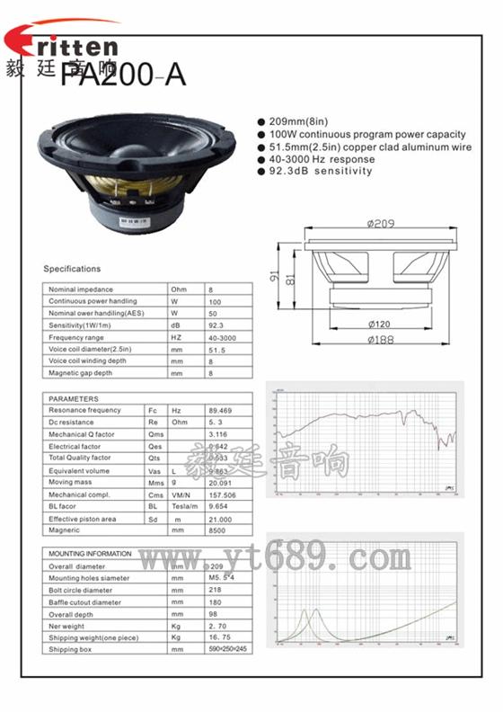 ★聚彩jc灵敏度(SPL):92dB(1M/1W)