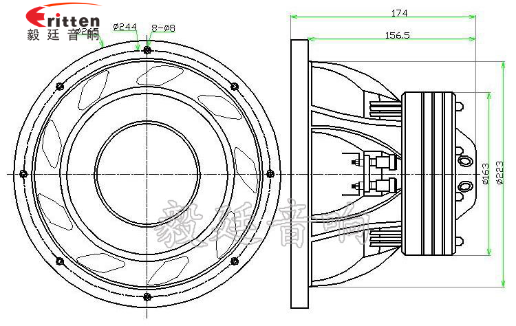 10寸圆形重低音喇叭,高纯度的铝盆架,采用铸铝盆架,承载着大型磁路和振动系统,高性能的铁氧体,磁性强,给喇叭提供了充足的动力;