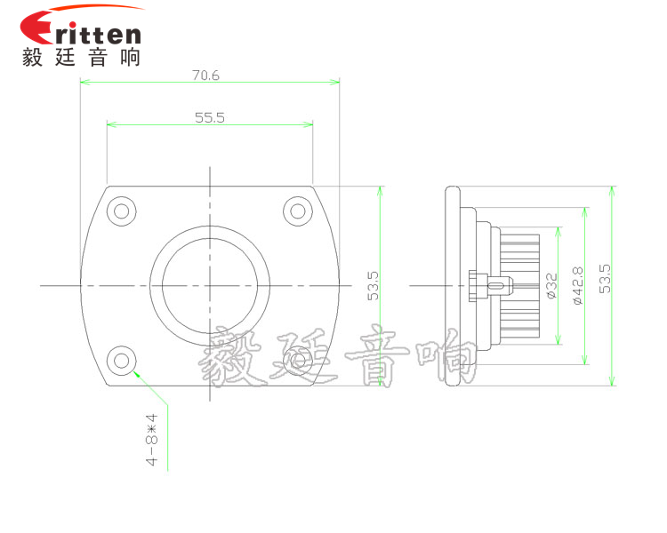 2.5寸异型塑料盆架内磁,采用强大的磁性给喇叭提供强大的动力,黑色的铝面板,4个安装孔;