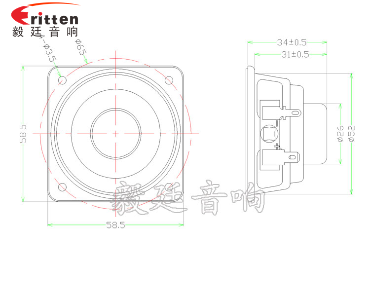 58mm方型铁盆架内磁全频喇叭,采用的是高性能钕铁硼,使音色稳定的发出,保持音质的丰富;