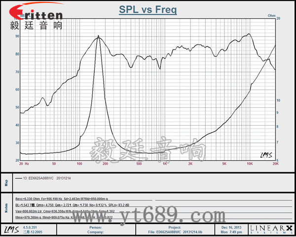 ★频率范围(freq response):166Hz~18KHz
