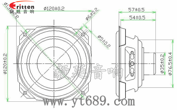 此款120mm中低音扬声器,采用的是高密度铁盆架,外观大众化,结实、高性能稀土高强磁,磁性永久,灵敏度高。