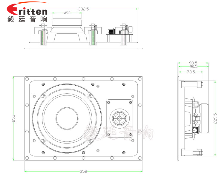 设计独特的分频器,兼具奢华时尚与实用性,三阶分频,高低音皆可调;