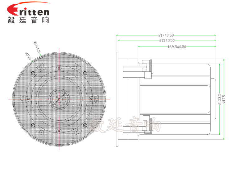此款5.25寸圆筒吸顶天花喇叭,额定功率为25W,频宽为135Hz~20KHz,音质清晰,穿透力强,主要用于办公场所天花上,酒店大堂,等等高档场所,是由毅廷工程师精心研发的一款超级完美的天花喇叭,值得推荐。