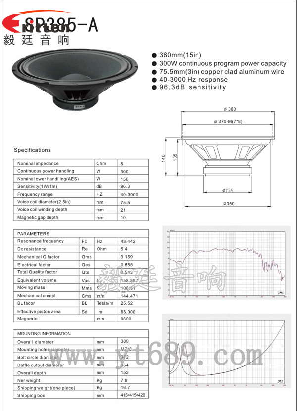 聚彩jc严格贯彻“质量让您放心、服务让您舒心、价格让您动心,此款15寸75芯150W重低音喇叭,优异用于舞台音箱喇叭的额定功率为150W,音域40Hz~3KHz,超重低音炮,下潜力深,也可用于KTV音箱、广场音箱上,用途广泛。