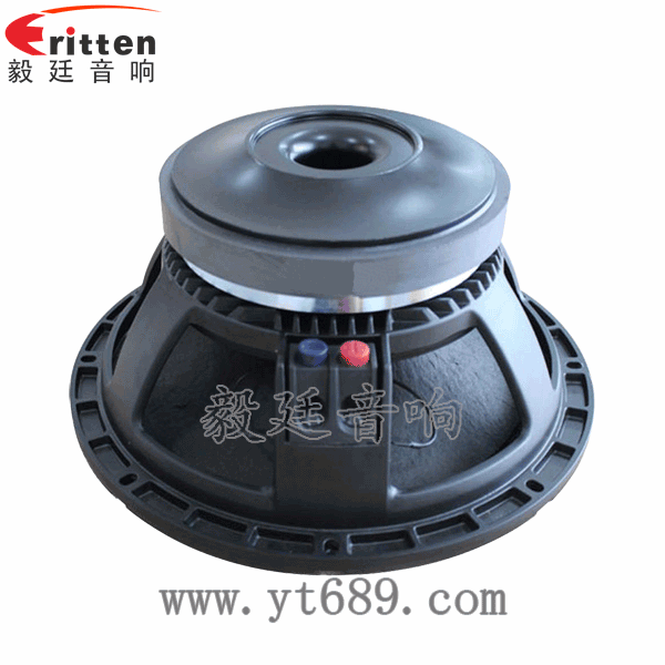 18寸圆形铸铝盆架外磁重低音喇叭,采用的是盆架以精钢冲压成型,涂覆黑色防氧化漆,设计精简牢固稳重实用,音色响亮透澈。