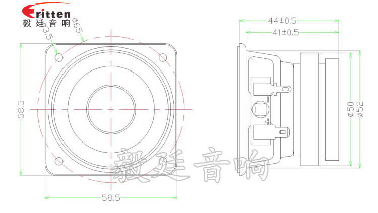 58mm方形铁盆架超重低音喇叭,采用的是外磁双磁,大大增强灵敏度,使声音更加完美,动听;