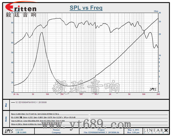 ★频率范围(freq response):77Hz~10KHz