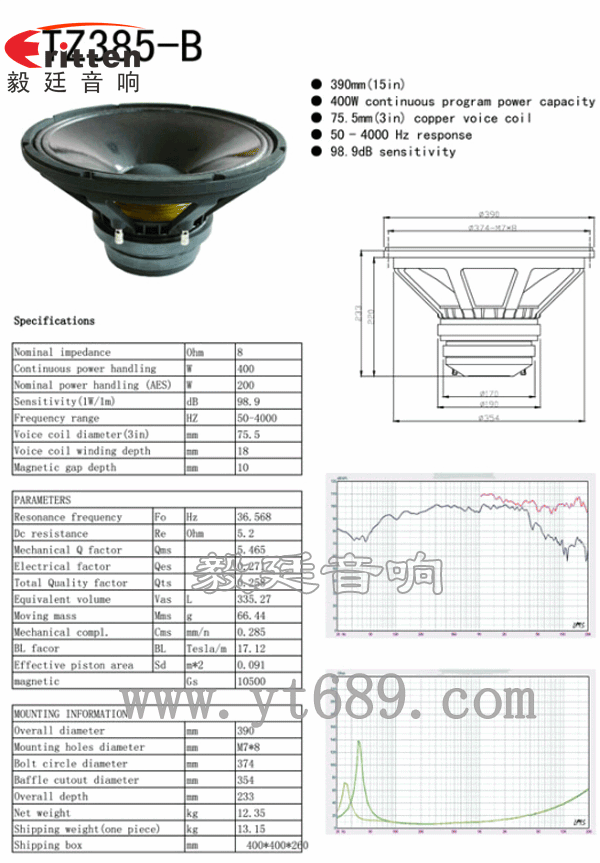 采用了布边纸盆,75芯铜线音圈,进口的纸浆热压成型的纸盆,表面经过特殊的胶水处理,可以更好的防潮效果;