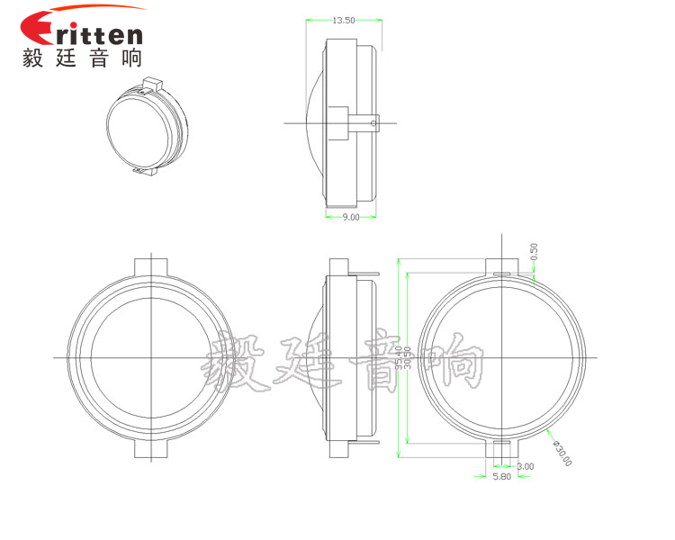 此款频率范围1.8KHz~30KHz,音色响亮透澈,也可用于31mm10W高音多媒体音箱喇叭,故事机,学习机上,东莞毅廷喇叭厂家一直以最真诚的服务,和最专业的技术受到广大客户的信赖。