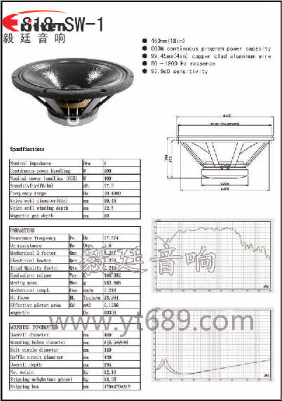 聚彩jc严格贯彻,质量让您放心,服务让您舒心,价格让您动心,这款舞台音箱喇叭,音域28Hz~3KHz,18寸100芯400瓦重低音喇叭。
