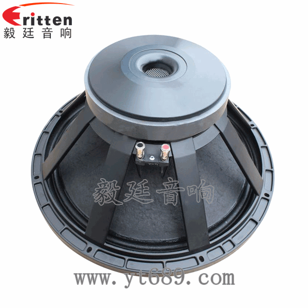 18寸圆型铸铝盆架外磁重低音喇叭,精钢冲压成型铝铸结构,表面涂覆雅典黑,稳固牢靠,声音具有稳定性。